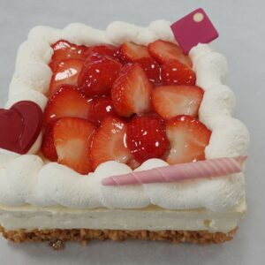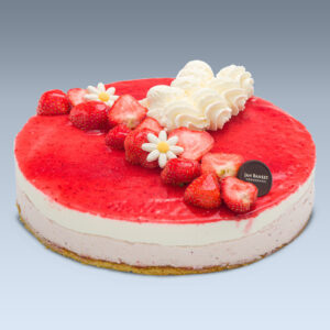 Moederdag Aardbeien vlaai 8 personenVlaaibodem goed gevuld met aardbeien bavaroise en afgewerkt met verse aardbeien en slagroom. Van Bakker Bos