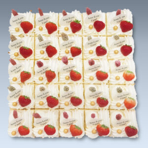 Aardbeien tompoes à 4 stuks (JB)Heerlijke tompoezen met echte banketbakkersroom, afgewerkt met slagroom en een verse aardbei.
